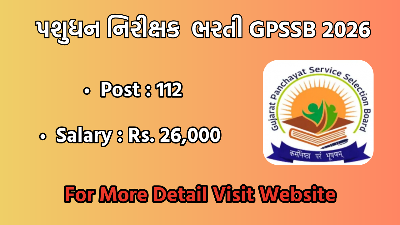 Even if we say that 2026 is the year of recruitment, it will work, because the Gujarat government often releases new Indians, and good positions are also filled in it, and today a new recruitment has been announced, Gujarat Panchayat Service Selection Board (GPSSB), Gandhinagar has advertised the recruitment for Livestock Inspector, and the Gujarat government has invited online applications from the candidates through direct recruitment.